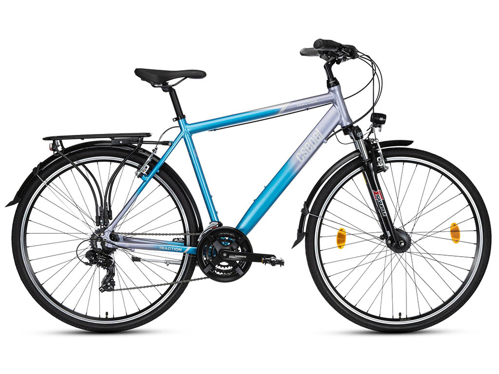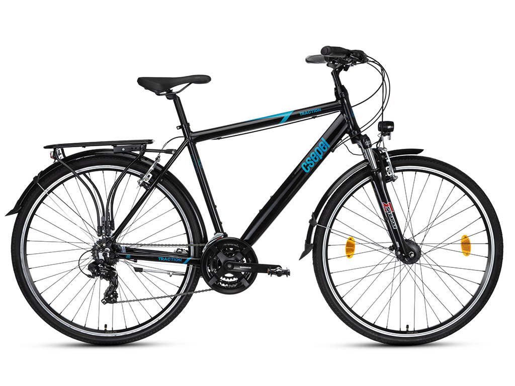 A Csepel Traction alu vázas túra kerékpárok mind városi, mind túrázós bringások számára jó választás. A Traction család 28" kerék mérettel készül 19, 21 colos alu vázzal, aminek hajtás rendszere láncváltós 21 sebességes kivitelben, több színben is elérhető. Felszereltségük teljes kresz és kényelmi tartozékokkal van felvértezve mint prízmák, lámpák, csengő, csomagtartó, sárvédő, kitámasztó. A trc 100 Shimano agydinamót tartalmaz az első agyban és a világítás innen kapja az energiát.